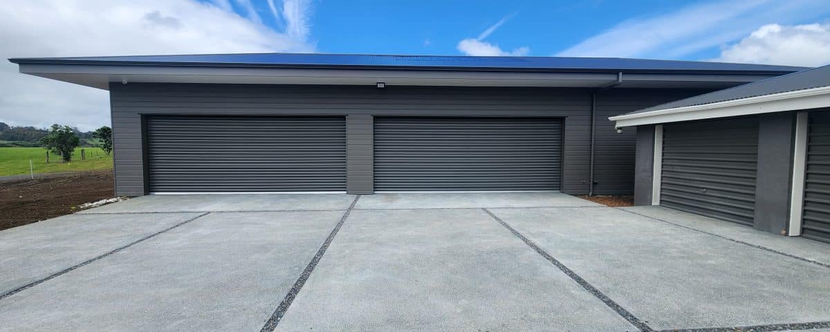 Project: Construction of a 3.7 m-high specialised garage for heavy equipment and vehicle lifts, fully integrated with an existing residential house.